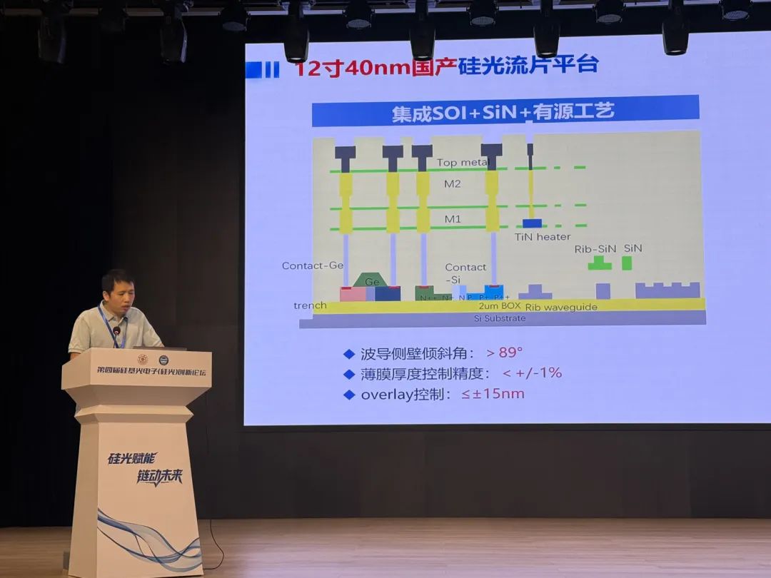 国家信息光电子创新中心(NOEIC)深度参与了论坛各项活动,硅光技术部经理陈代高在专题报告二《硅光产业发展》中与专家学者一同分享在硅光技术应用与产业化领域的深刻见解;并以《面向光电融合的创新服务体系》为题作报告,介绍NOEIC“芯(芯片流片)、封(封装加工)、测(测试验证)、集(集成系统开发)”服务体系。