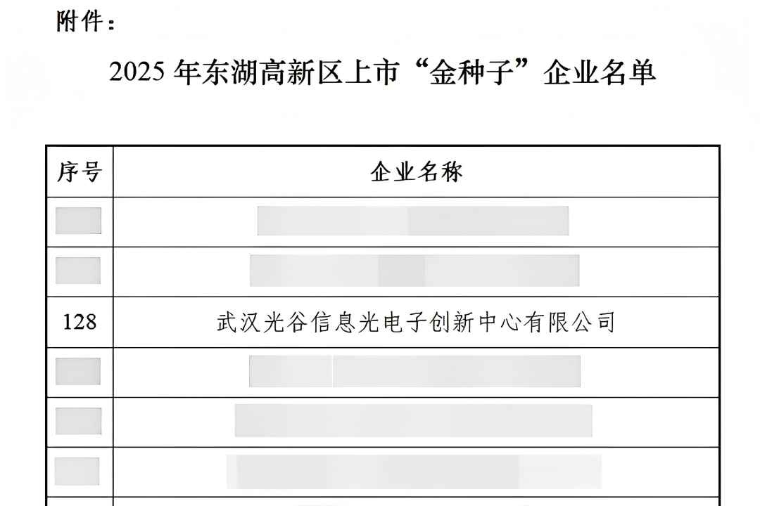 东湖高新区上市“金种子”企业东湖高新区上市“金种子”企业,是武汉东湖新技术开发区为推动区内企业上市而重点培育的后备力量,聚焦筛选与培育具备上市潜力的优质企业,入选企业将获得绿色通道、辅导培训、金融支持、项目对接与优先推荐等全方位支持。面向未来,NOEIC将持续锚定光电子芯片的研发与产业化落地,紧抓市场风口机遇,从容应对行业挑战,以高速稳健的发展节奏稳步向前,为国家信息光电子产业的高质量进阶持续输送创新动能!